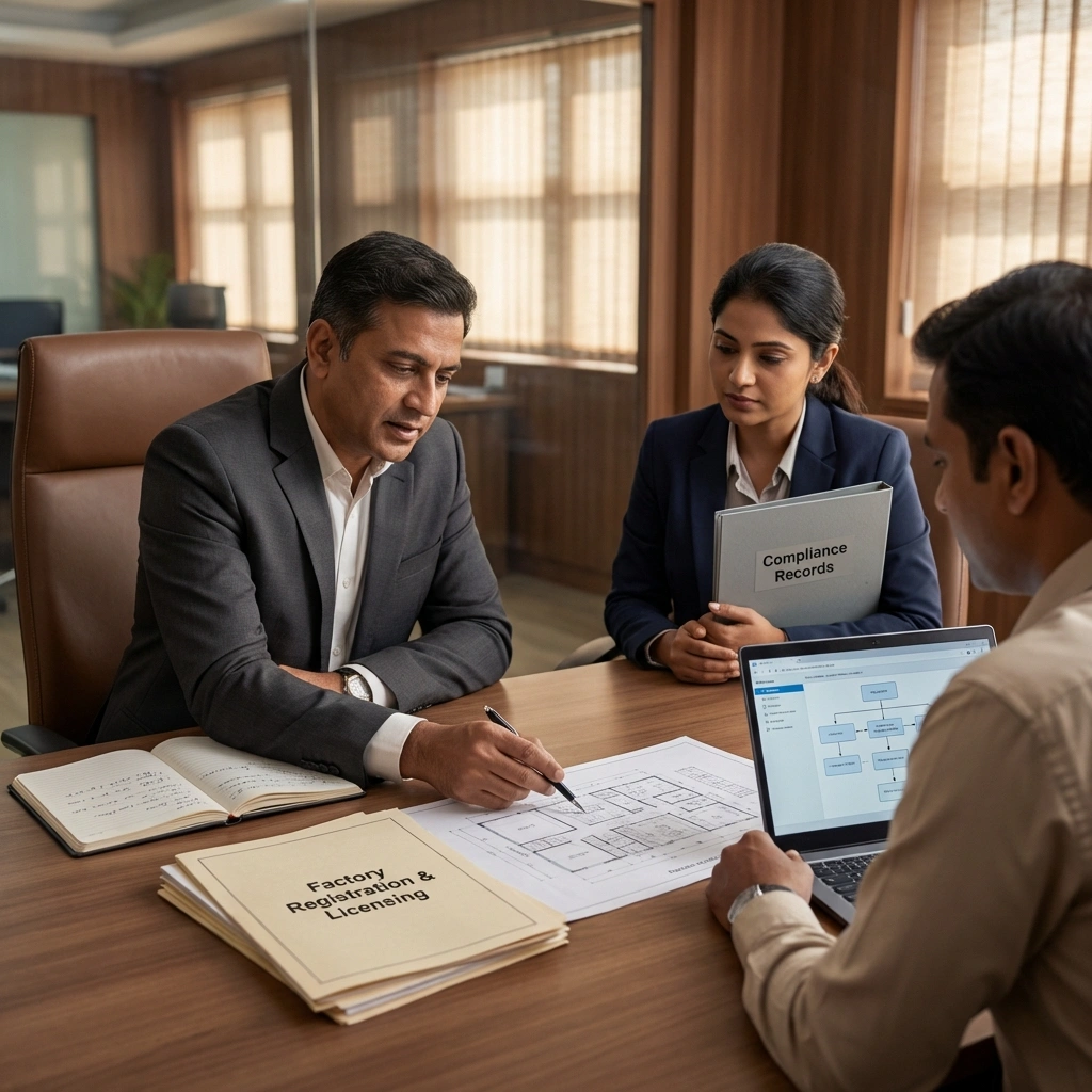 Under the Factories Act, 1948, manufacturing units employing a specified number of workers must obtain factory registration and comply with statutory labour regulations. Our experts handle the entire compliance process — from factory license registration to maintaining statutory records and ensuring full compliance with safety and labour laws.